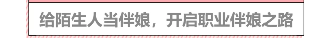 不堪忍受,最後,她選擇成為一個租伴娘的APP的線上負責人。主要為公司挑選培訓職業伴娘,運營APP,解決伴娘與客户之間的矛盾。