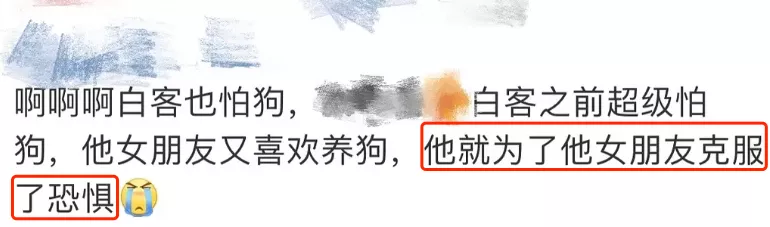 還有粉絲貼心的爆料,白客害怕狗,但為了前女友克服恐懼。