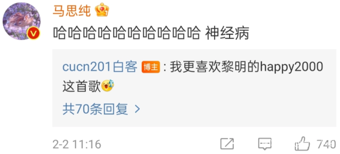 哪怕隨便發個諧音梗,馬思純都覺得,你好有趣哦~