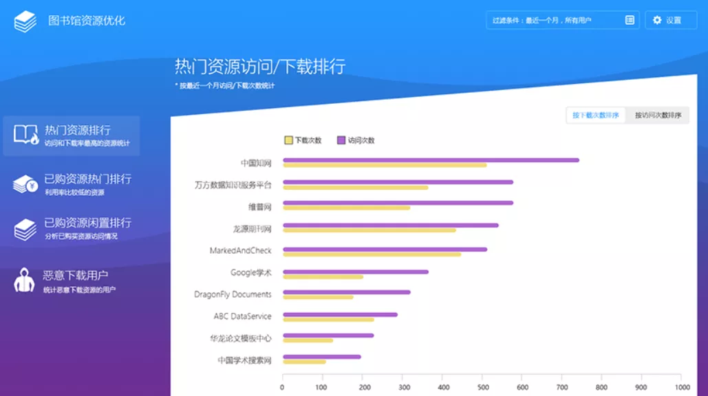 比如就幫助圖書館分析電子資源利用率,分析什麼資源熱門,什麼資源冷門,方便學校優化購買政策的 ↓ ↓