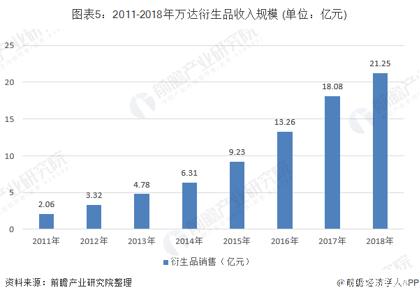 2011-2018年,萬達影視衍生品收入規模不斷上漲,增速保持在18%-60%之間。2018年達到21.25億元,實現歷史新高。