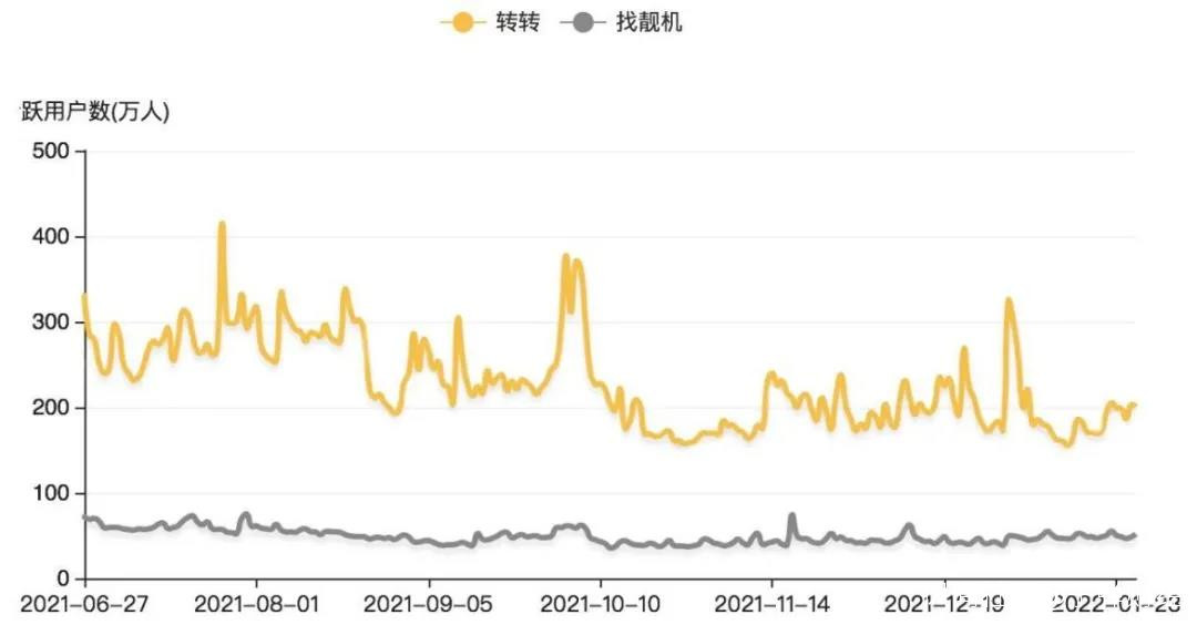 **這也説明,通過燒錢換增長這招曾十年前奏效的致勝法寶,在當下並不適用,現實是大成本投入之後並不能真正留住用户。**從轉轉新近的數據也可以看到,不論是轉轉還是找靚機,其活躍用户數量也都呈現下跌趨勢。
