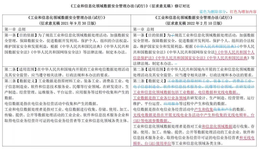 據工信部官網2月10日消息,根據2021年9月30日公佈的《工業和信息化領域數據安全管理辦法(試行)》(徵求意見稿)(以下簡稱《管理辦法》)收到的公開意見,工信部對該法規草案進行了修改完善,再次面向社會徵求意見。
