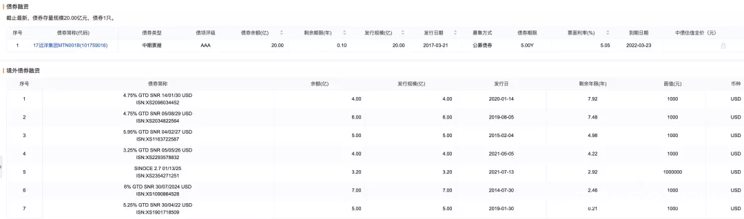 而且根據企業預警通顯示,到今年3月,遠洋將有51.79億人民幣的境內外債券到期,其中包括20億境內債券,以及5億美元的境外債。
