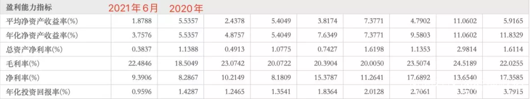 **近年來,遠洋毛利率始終維持在20%左右,2020年更是跌破20%,只有18.5%,同期淨利率也只有8.3%。**到2021年上半年,兩項指標有所微升,但仍處於行業較低水平。