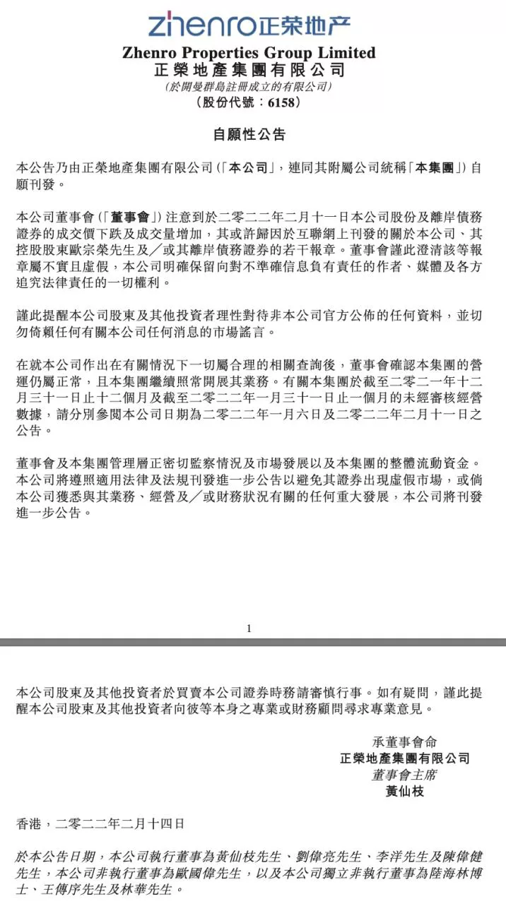 圖片來源:正榮地產自願性公告