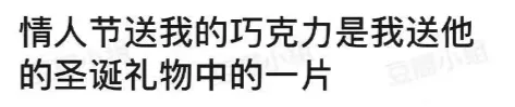還有奇葩中的戰鬥機,女生聖誕節買了巧克力送給男生,2個月後的情人節,男生從巧克力中拿出來了一片,送給了女生。