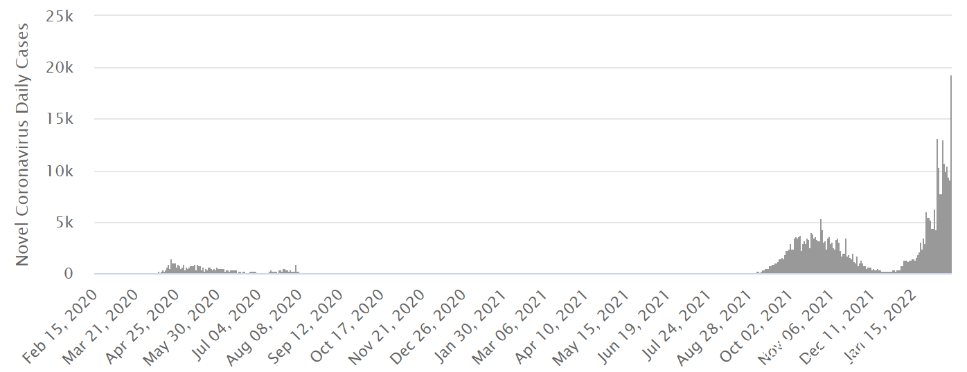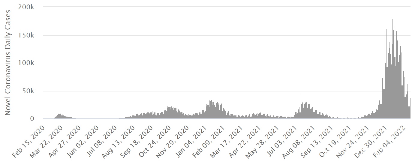 以色列單日新增確診病例(2020.02.15-2022.02.16)