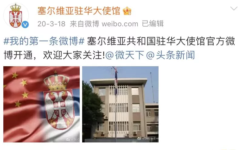 比如在中國網友的強烈呼喚下,開通微博的塞爾維亞駐華使館。