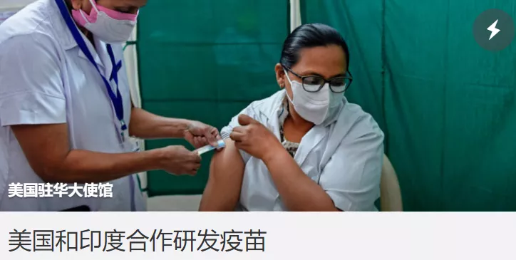 美國駐華大使館發了“美國和印度合作研發疫苗”的微博: