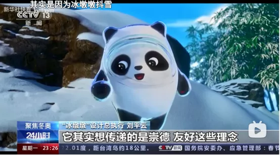 比如一次直播中,後方主持人問它“今天有什麼花樣滑冰的情報”。被他簡單扼要地用一句“沒有什麼最新的花樣滑冰情報”終結了報道,但隨之而來的是他緩緩拉來自己衣服的拉鍊:“但是有最新的冰墩墩情報“。