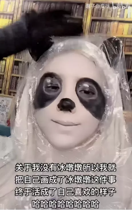還有這位更是重量級的,直接把自己畫成了“冰墩墩”……