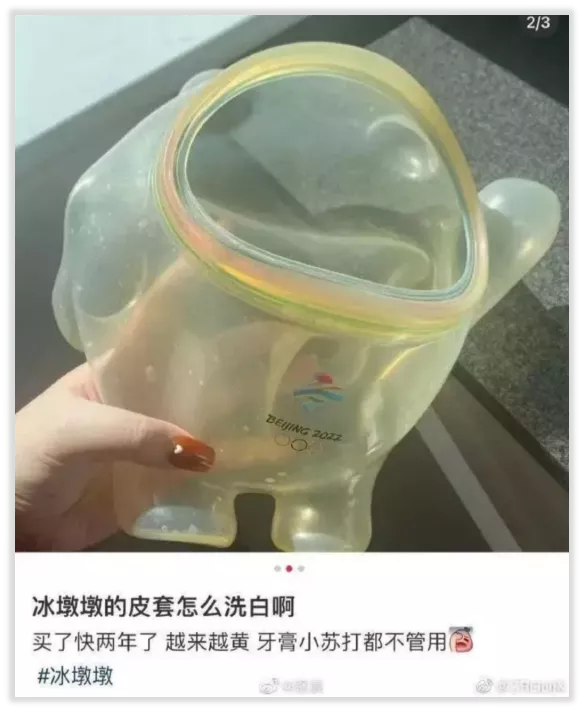 現在賣到脱銷的冰墩墩玩偶也在很早的時候就出了,現在不少網友曬出泛黃的冰墩墩外殼,一半是困擾,另一半來自自己是“老粉”的高級凡爾賽。