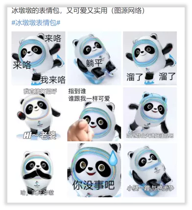 我想很多人都對義墩墩的話深有同感。冰墩墩用自己的可愛征服了無數人,一堆表情包的誕生也使得它滲透在大家日常交流的點點滴滴中。