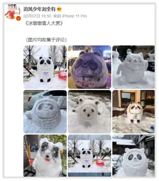 恰逢這段時間國內多地下雪,好多人親手堆出的“雪墩墩”也確實展現出一股別樣的“冬奧風情”。