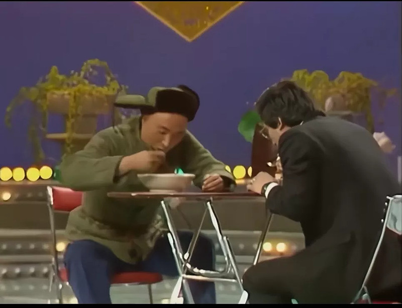 **那個年代,小品還不入流。**5年後宋丹丹蔘演《懶漢相親》,彩排回家也只得到時任文化部副部長的公公一句“拿肉麻當有趣”。純逗樂的《吃麪條》上台前更是困難重重,臨演前10分鐘才被最終敲定,黃一鶴賭一般地説:“一個字都不能錯,出了事你們可就害了老哥我了。”