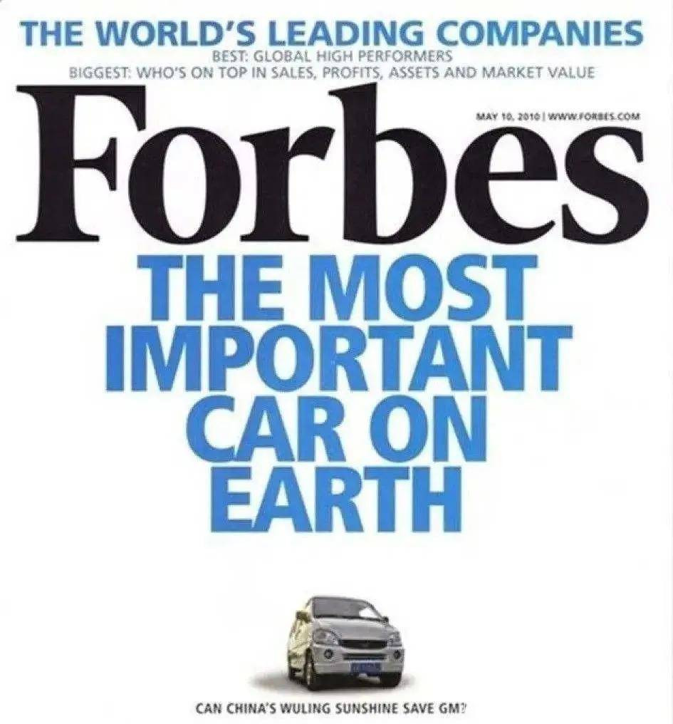 2010年5月,國產車五菱汽車登上了福布斯雜誌的封面。在那期雜誌的封面上,福布斯稱五菱宏光為「地球上最重要的一款車」。其實大眾通常忽略的是雜誌封面下的一行小字「Can China’s Wuling Save GM?」(五菱是否能夠拯救通用汽車?)
