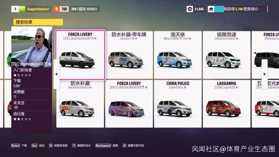 新車解禁之後,大量UP主第一時間把五菱神車梗玩到了遊戲中。玩梗的主要方式,是為各自的五菱宏光設計一系列符合中國特色的噴漆。其中,最受歡迎的是「專業補漏」和「中國郵政」這兩款設計,總下載量接近了4萬次。五菱宏光的玩家自制噴漆已經超過了25款,玩家們甚至還在社交媒體上許願着更多他們現在《地平線5》中看到的噴漆元素。