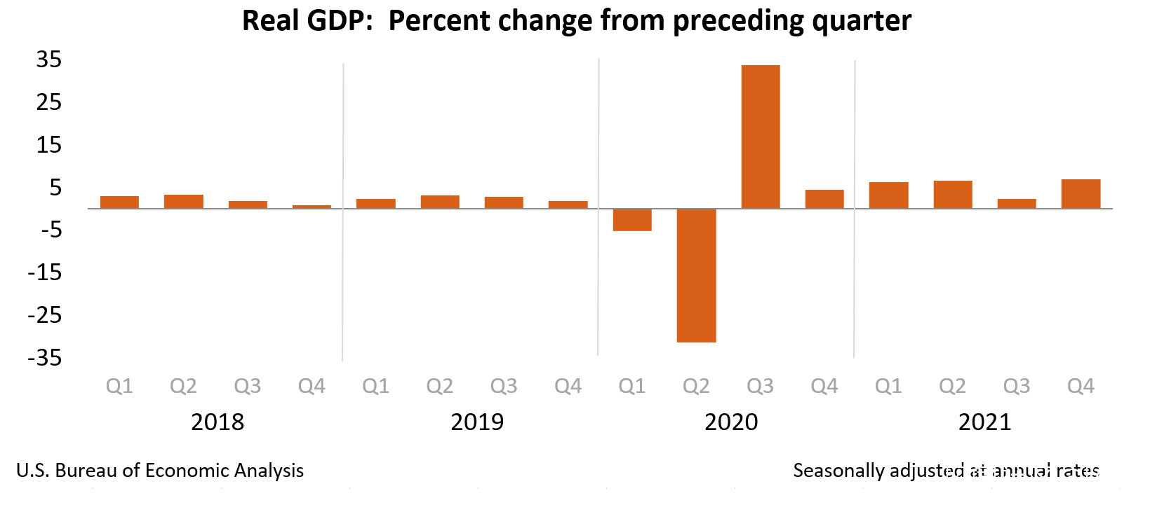 5. 美國習慣對季度GDP也進行預測,説反應速度快,等一年就晚了。1月中,美國官員又降了調門,説奧密克戎和勞工短缺以及通脹,經濟增長會受點“温和”影響,一季度會年化季環比增長會降點到“健康的”2.2%,全年增長3.5%高於正常年頭。這是説還是好,但不是強勁增長了。