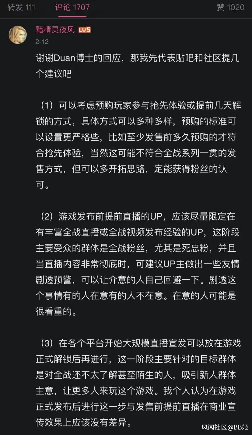 負面情緒迅速散播到玩家社羣中,諸如什麼“預購玩家狗都不如,主播們卻是CA的爹。”“上市了我就差評+退款二連”的言論不絕於耳。