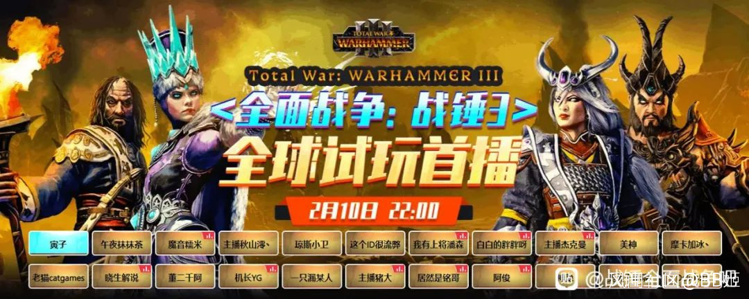 人們都説問題“集中在鬥魚”。2月10號,CA聯合鬥魚發起了全球試玩首播,將一眾主播,無論與全戰戰錘的相關性高低,都拉進了這場氣氛搞起來的狂歡。