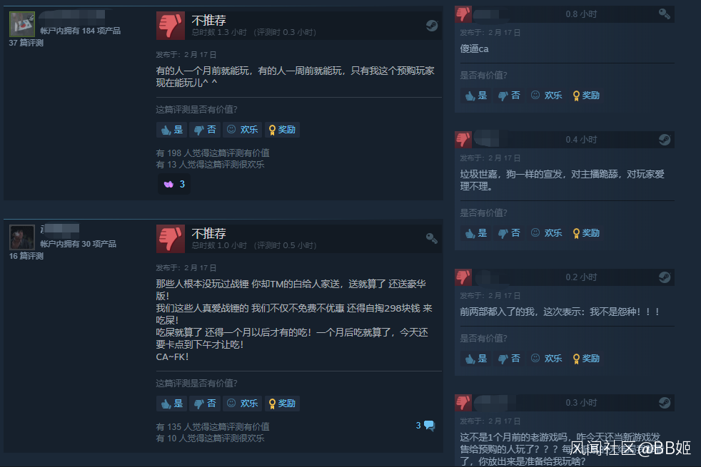 事件的經過差不多就是這樣。直至今天遊戲正式解鎖前,像Steam評論區還能看到一些聲討CA和主播的聲音出現。