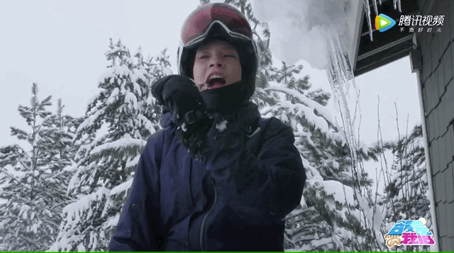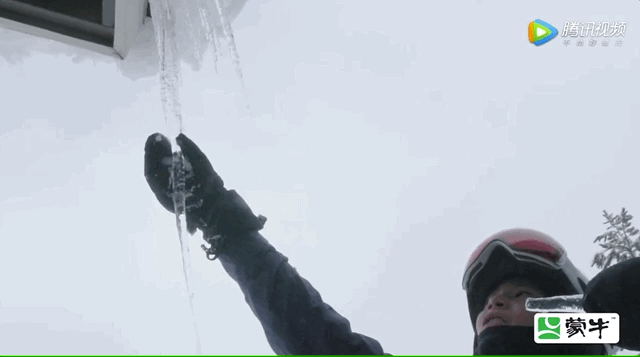 伸手去掰屋檐下的大冰稜,結果把自己“埋”了。