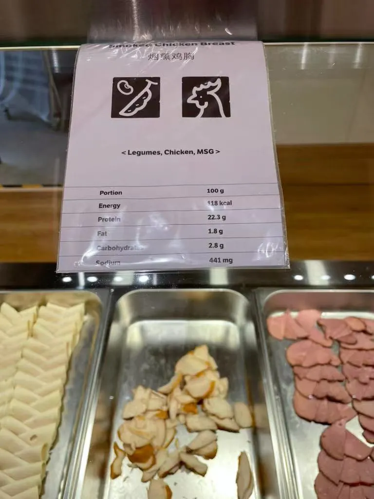食堂提供的所有食物,提供了這樣的營養成分信息,包括份數,能量,蛋白質,脂肪,碳水化合物,鈉,換算成鹽含量。