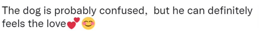 “狗狗好像已經蒙圈了,但它肯定能感受到這份愛。”