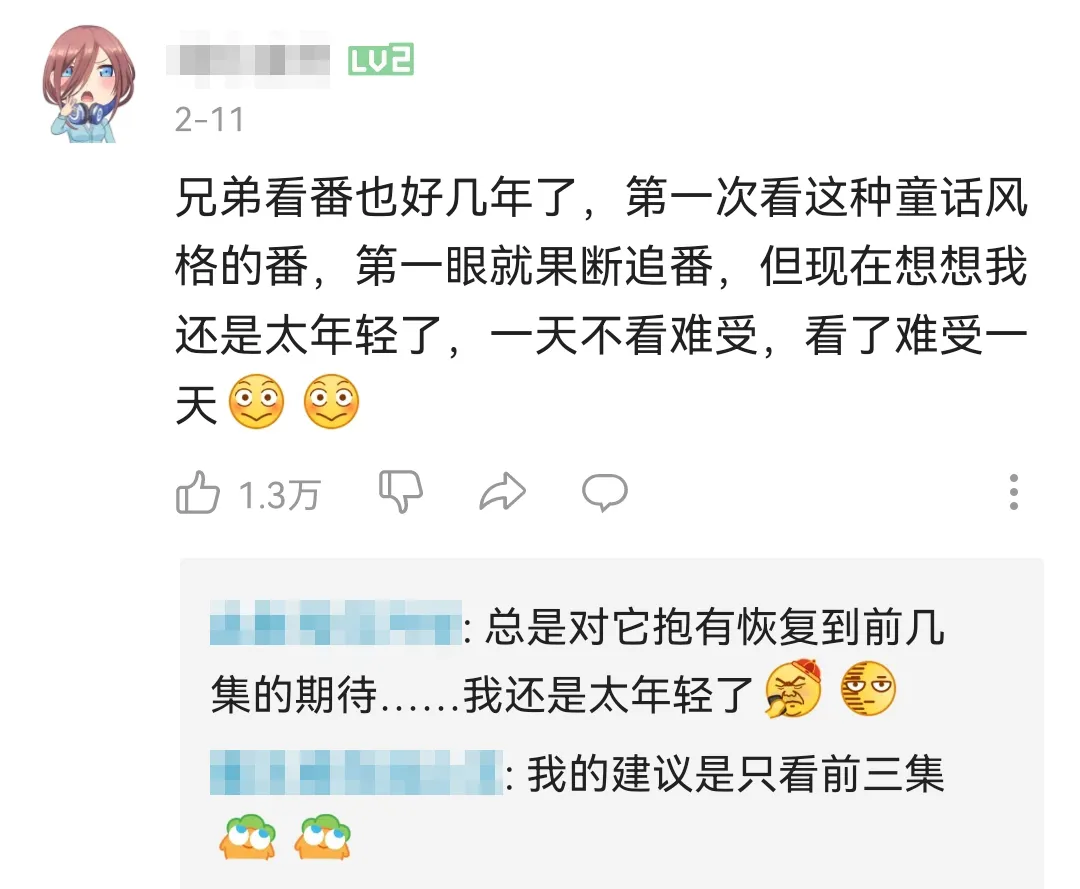 動畫劇情發展與觀眾期望不匹配,越容易帶來負向口碑發酵。一如數年前網友製作的“新入宅補番推薦”,時至今日該“坑新榜單”仍為動漫愛好者津津樂道。