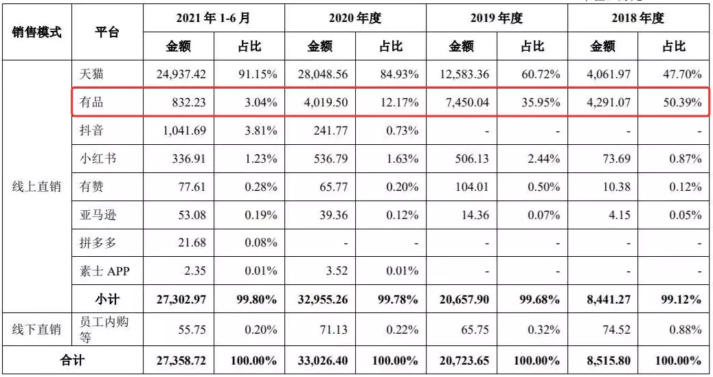 據數據顯示,2018年-2020年以及2021年前6個月,素士科技與小米的關聯銷售額分別為3.93億元、6.28億元、8.31億元和5.11億元,佔素士同期營收的比重分別為73.52%、61.31%、60.60%和56.40%。