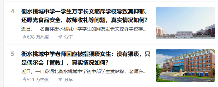 天目新聞 16 日搜索發現,該網友用於發文的社交賬號已被註銷,但不少自稱也是衡水桃城中學的學生或認識的朋友在轉發的留言中聲援文中的部分內容,如考試頻繁、體罰嚴重等現象。
