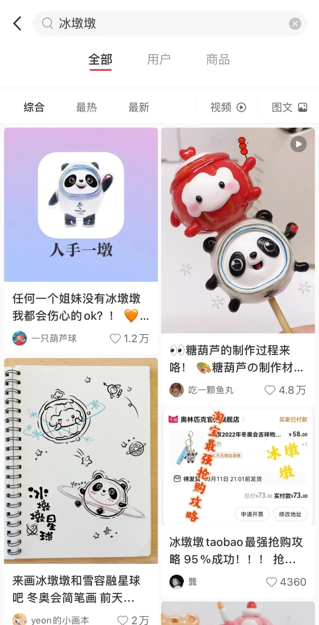 在“一墩難求”的局勢下,冰墩墩是毫無疑問的頂流。小紅書裏,光包含“冰墩墩”的筆記,就有超過30萬篇。