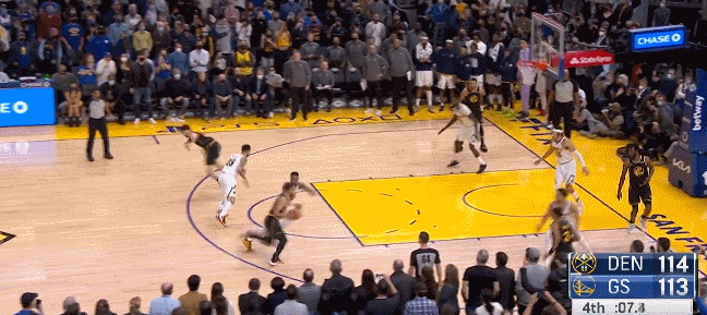 即便只領先1分,掘金的最後一攻也不會把時間壓死,因為萬一打不進一切就結束了。掘金一定會留一點時間以防自己打不進,好採取犯規戰術,這樣即便他們打進了,最後一攻的機會還是在勇士自己手裏。