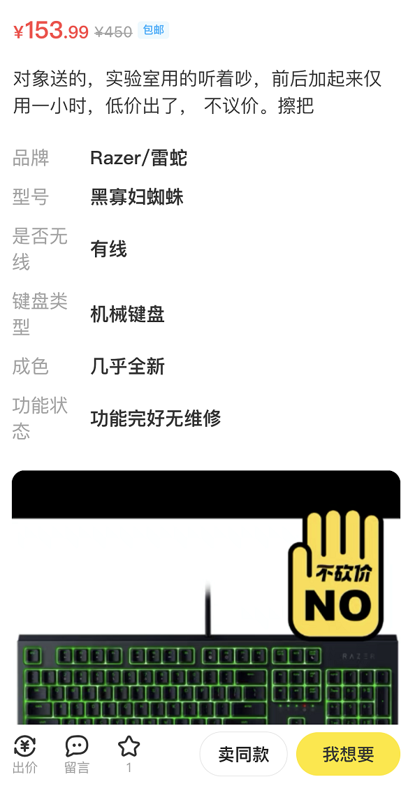 開開心心拿來打字,劈里啪啦的聲音瞬間便會引來同學們眼神飛刀;最後只好掛在閒魚上,用了還沒一小時,但售價卻被攔腰砍了一刀。