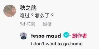 網友問她為什麼難過,她難掩不捨之情:“我不想回家”。