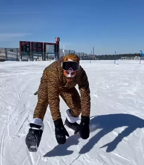 2月9日,瑞士單板滑雪運動員尼古拉斯·胡貝爾(Nicholas Huber)在社交媒體“照片牆”(Instagram)上發佈一條視頻,以老虎裝扮出境,慶祝中國農曆虎年新春。