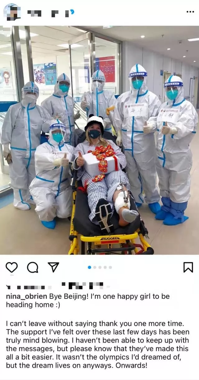 手術之後,奧布萊恩發文致謝中國醫護,“我想對所有照顧我的人説聲謝謝,尤其是那些在終點衝向我的人還有延慶的醫生和護士們。”