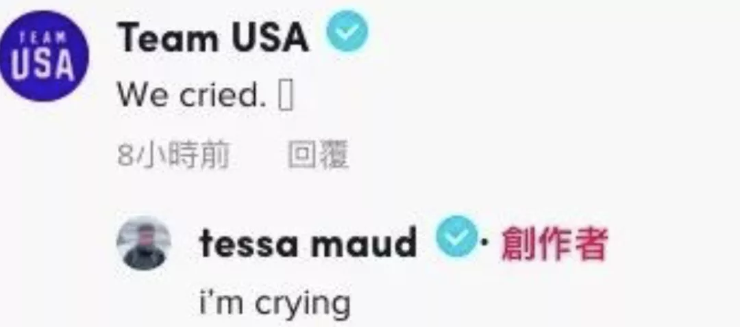 冬奧會美國隊的官方賬號也在留言板中回覆道“我們都哭了”。