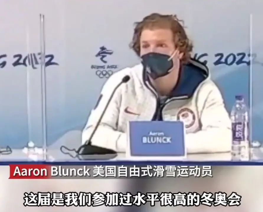 在一場新聞發佈會上,美國自由式滑雪U型池運動員Aaron Blunck當着全世界媒體的面,表示在美國看到了各種關於北京冬奧會的不負責任的報道。
