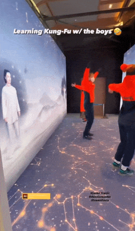 比如美國雪橇運動員薩默·布里徹剛剛體驗完卧室的智能牀,就拉着隊友一起跟着大屏幕學習太極拳,做起了“白鶴亮翅”的動作。