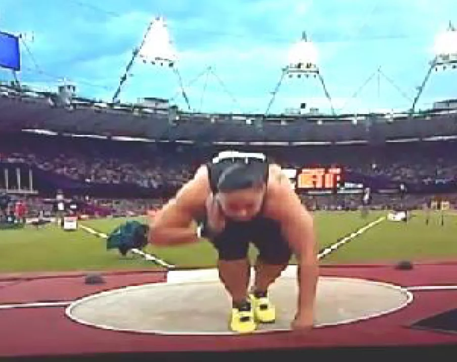 12 年倫敦奧運會,鞏立姣身體比冠軍 Valerie Adams 多前傾了 2 °。這兩度使得她的發力距離比冠軍短了一點。