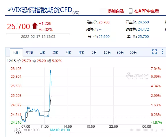 避險情緒捲土重來,恐慌指數一度急拉5%,美股三大指數期貨集體下跌