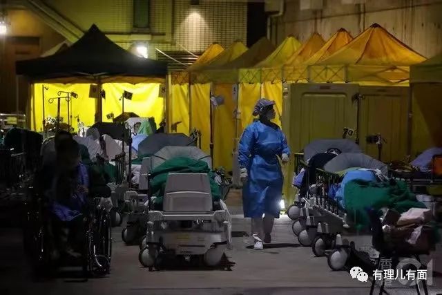 全家發燒無法入院的情況,比比皆是。而香港公共醫療系統無法接收大量病例,只能在急診室門口搭起簡易棚子收治病人。