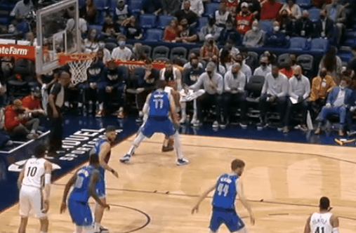 對鵜鶘得49分那場,盧卡第一節最後這麼防了英格拉姆一球:腳步移動、重心、平衡、移動、干擾,連最後出手干擾後縮手免得犯規,都一應俱全。
