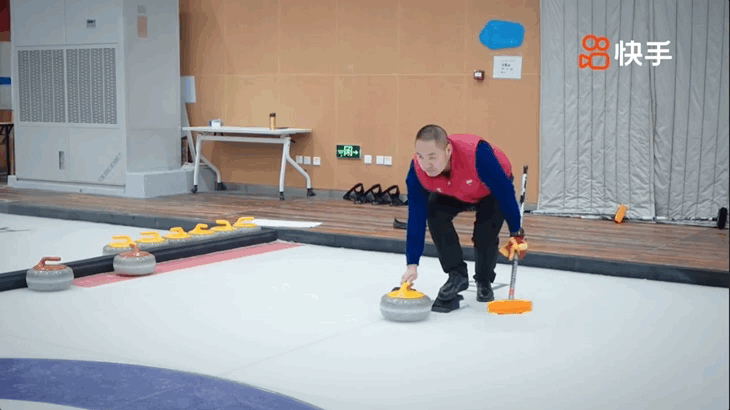 投壺時,他擺出助跑的姿勢,半跪在助滑器前,用右腿一蹬,自己低俯在冰面上,向前緩緩滑出。冰壺也和他融為一體,彷彿進入一種零重力狀態,以同一直線、同一速度,在前指引着他。