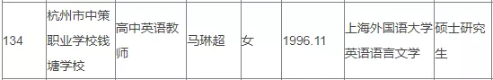 除了普高,杭城許多職高今年新聘的老師履歷也很出挑,不少都是浙大、華師大、上外、西安交大等985、211高校的研究生,還包括1名浙大博士。