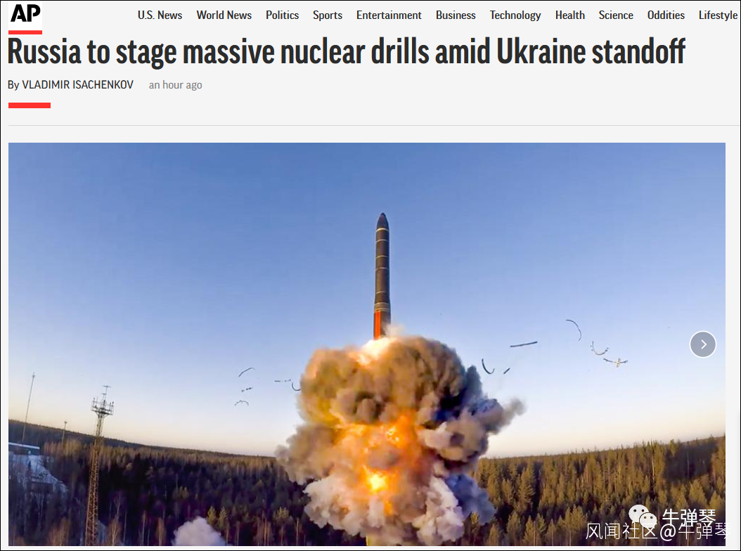 因此,用美聯社的話説,“在西方國家擔心俄羅斯入侵之際,這場演習是來自俄羅斯核力量赤裸裸的提醒。”