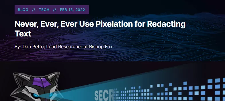 Never, Ever, Ever Use Pixelation for Redacting Text
