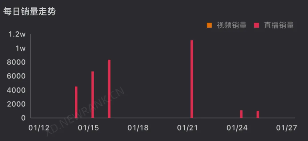 而自1月12日起至1月25日春節放假前最後一場直播,東方甄選直播帶貨銷量迎來了第一波高峯。這段時間累計帶貨商品145件;累計銷售額208.02萬元;累計銷量3.28萬件。